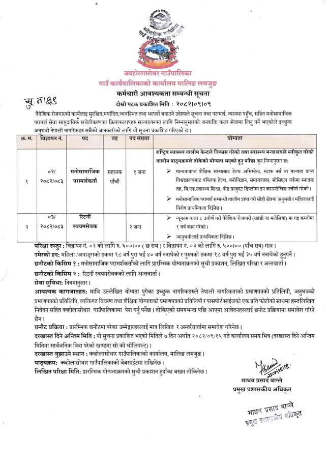 कर्मचारी आवश्यकता सम्बन्धी दोस्रो पटक प्रकाशित सूचना