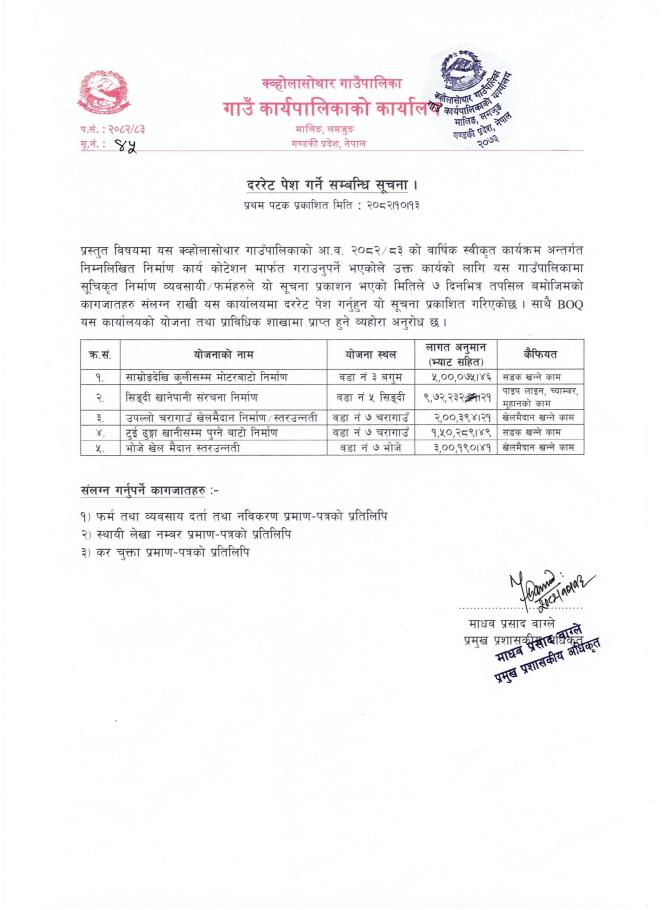जिम्मेवार अधिकारीः- वडा अध्यक्ष